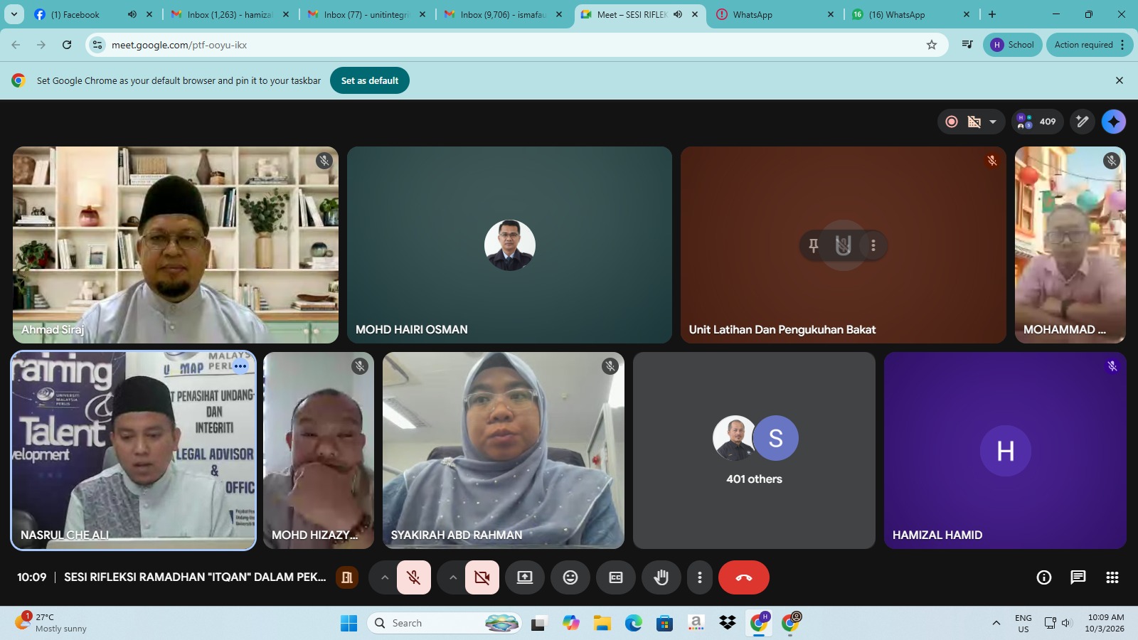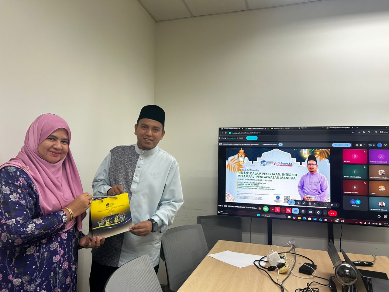 Program ini dianjurkan oleh Unit Integriti, Pejabat Penasihat Undang-Undang & Integriti dengan kerjasama Unit Latihan & Pengukuhan Bakat, Jabatan Pendaftar, Pusat Islam & Pembangunan Insan (PIMPIN) serta Persatuan Pegawai Tadbir & Ikhtisas (POTENSI).